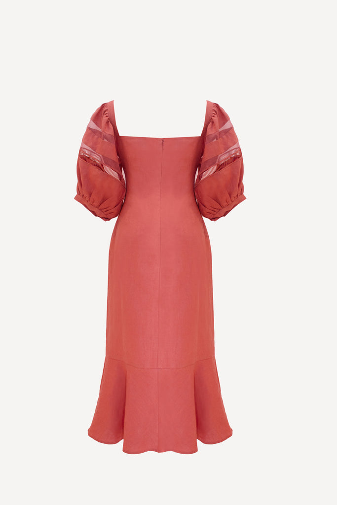 This dress also comes with frills at the end of the skirt, and swirls when you walk. This linen dress is not lined, so its breezy and lightweight.