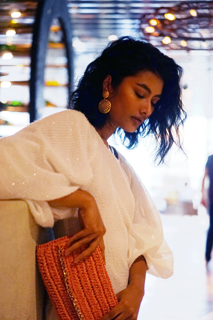 Textured Shiny Georgette puff sleeves short dress