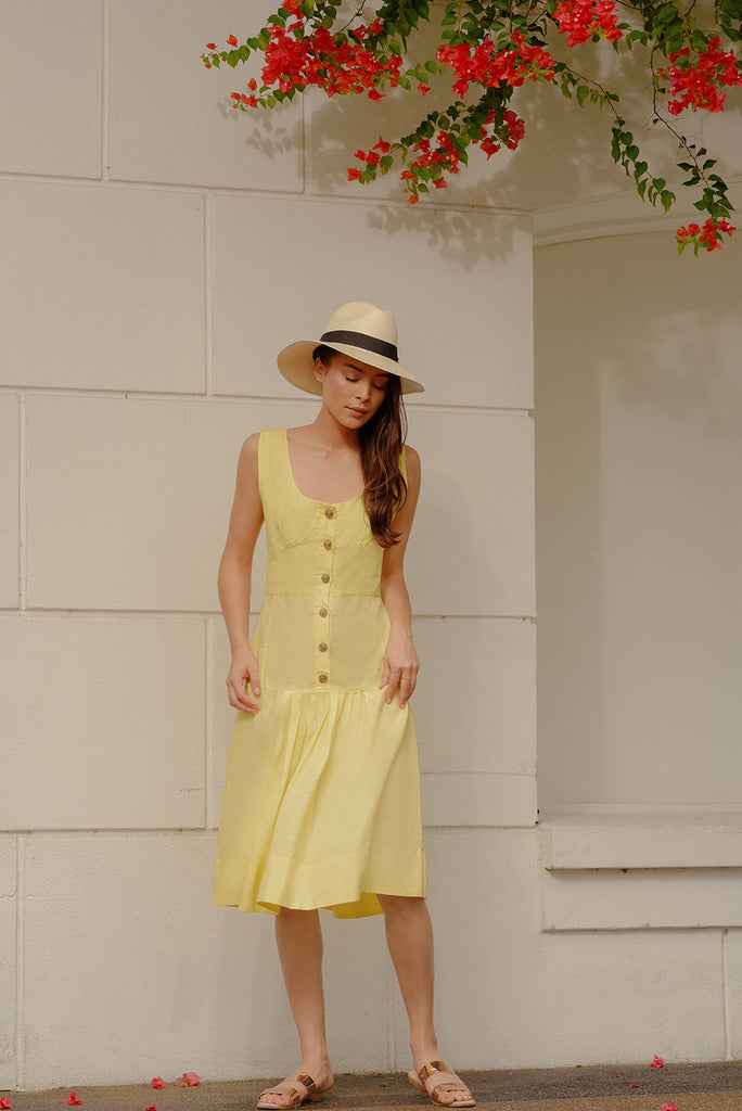 Vacation packing calls for pieces that you can wear for a variety of different outings, and this midi dress certainly ticks that box - slip it on over your bikini for afternoons by the coast or style it with espadrilles for dinner. Cut from cool and airy linen and cotton blend fabric that’ll feel cool even on the balmiest days. It has a neat row of gold colour buttons that complement the lemon yellow shade beautifully.